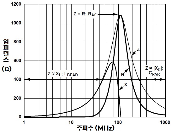 원문(Ferrite Bead Demystified)에서는 Tyco 제품의 BMB2A1000LN2 비드를 예를 들어 설명하고 있습니다.