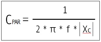 비드의 기생 캐패시턴스는 위 식으로 계산할 수 있습니다. 계산하실 때, f 값은 위 비드의 ZRX 응답 특성 그래프에서 Capacitive 영역의 주파수 값을 대입하시면 됩니다. 예를 들어 주파수가 f = 803MHz이면 리액턴스는 대략 118Ω 입니다. 대입해서 계산하면 기생 캐패시턴스는 1.678 pF입니다.