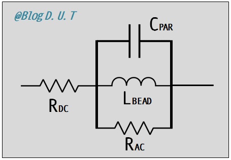 여기서 C는 기생 캐패시턴스, L은 비드의 인덕턴스, Rdc는 비드의 DC 저항, Rac는 비드의 AC 저항 값입니다.