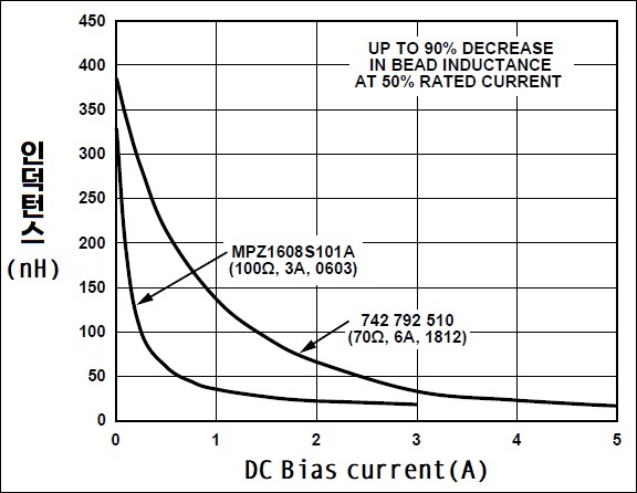 전편에서 계속 말씀드린 내용이지만 비드의 임피던스 특성을 이해하는 것은 정말 중요합니다. 그러나 더 중요하게 생각해야 될 부분이 있습니다. 바로 비드의 DC 바이어스 전류(DC Bias current)입니다.
