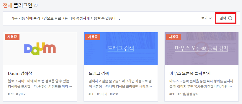 그런데 플러그인에서 아무리 검색을 해봐도 구글 애드센스 플러그인은 없었습니다. 다시 다른 정보를 찾아보니 구글 애드센스 플러그인은 티스토리가 업데이트되면서 사라졌습니다. 그래서 이 방법으로도 티스토리 모바일에 광고를 게제할 수 없었습니다.