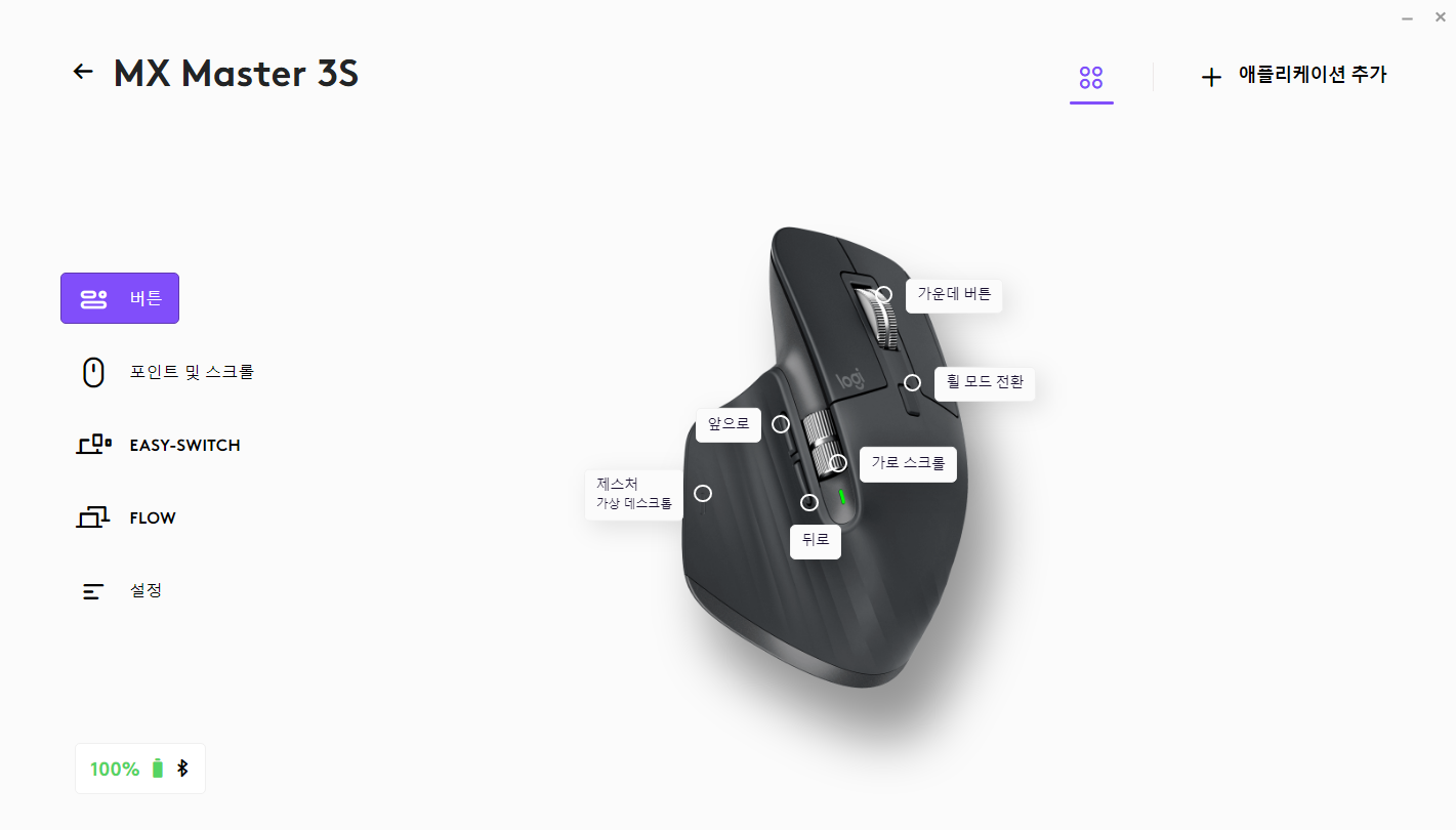 로지텍 MX Master 3S 마우스의 다양한 설정을 변경할 수 있습니다.