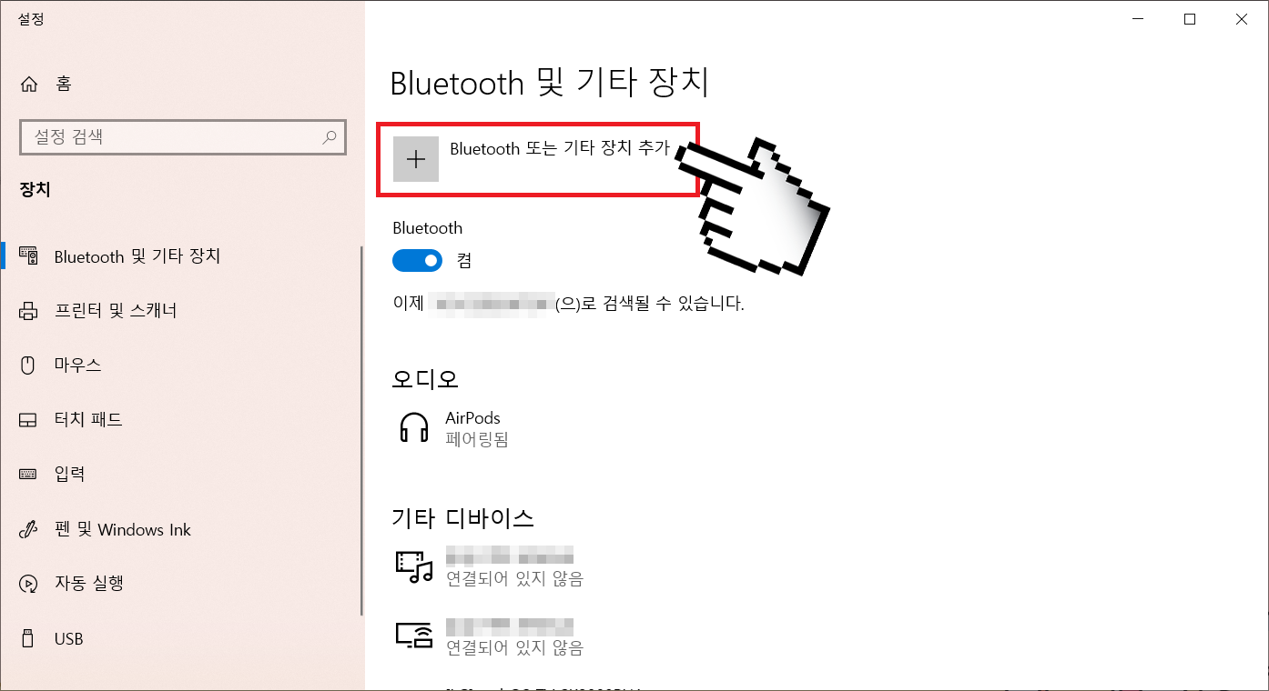 그리고 Bluetooth 및 기타 장치 추가 메뉴를 클릭합니다.