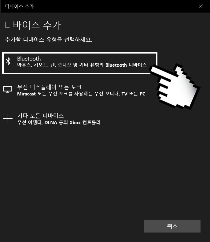 참고로 블루투스를 지원하는 모든 무선마우스는 아래처럼 동일한 방법으로 연결할 수 있습니다.