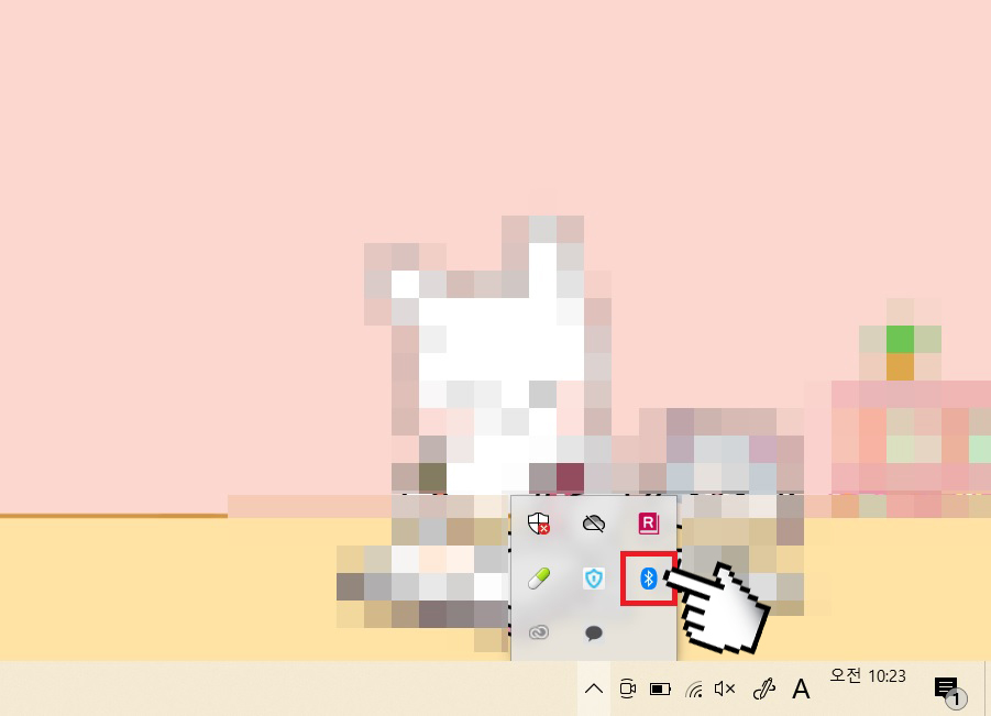 다시 한 번 말씀드리지만 블루투스를 지원하는 노트북 혹은 컴퓨터 경우에만 숨겨진 아이코 표시에 위 블루투스 아이콘이 있습니다.