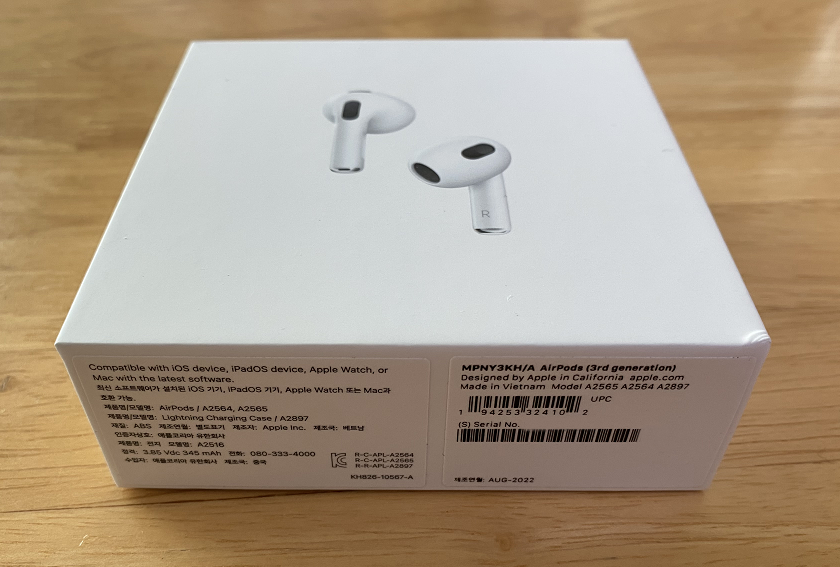 이번에 구매한 제품은 바로 에어팟 3세대입니다!