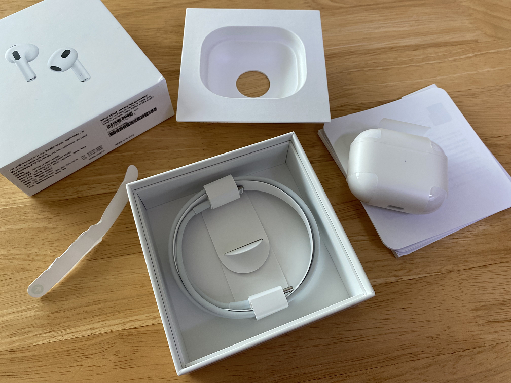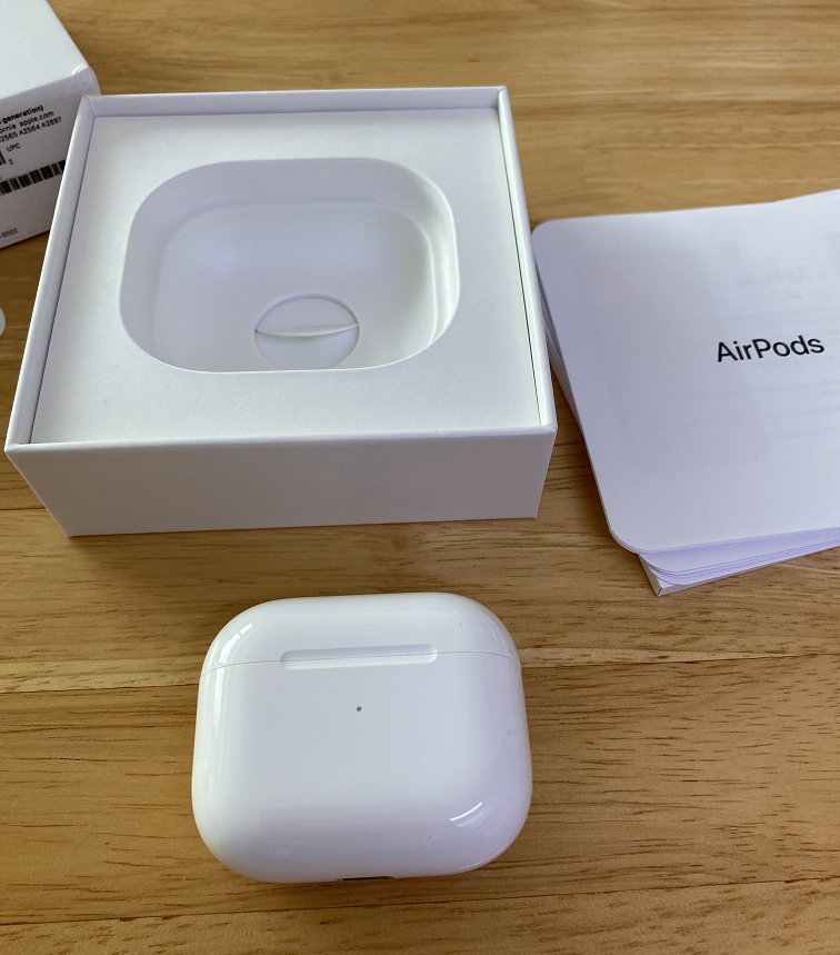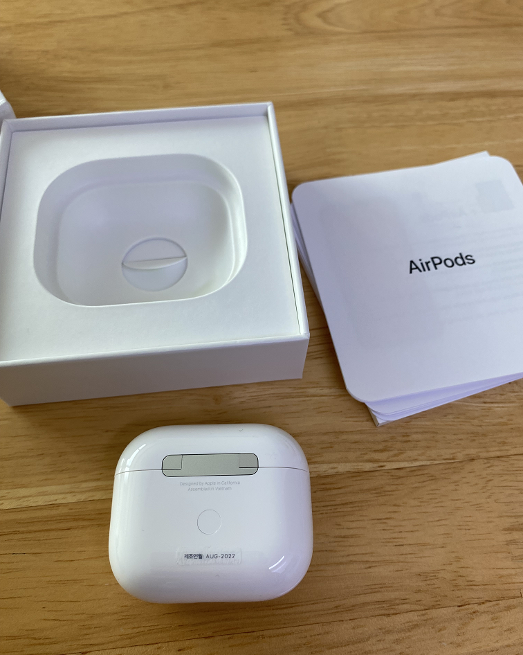 심플하게 제품과 박스가 구성되어 있어서 언박싱은 끝났습니다! 에어팟 3세대도 최대 약 5년 동안 한 번 사용해 보겠습니다! 잘 지내보자~ 에어팟 3세대!