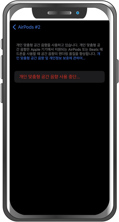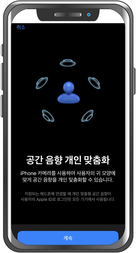 좌, 우 귀 스캔(?)이 끝났습니다. 이제 공간 음향 개인 맞춤화 기능을 사용할 수 있습니다.