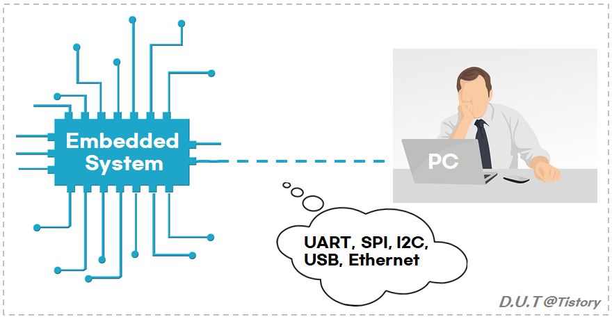 임베디드 시스템 입장에서는 데이터나 결과물을 전송하는 목적이 크지만 펌웨어 및 임베디드 소프트웨어 개발자, 하드웨어 엔지니어에게는 디버깅 용도로 가장 많이 사용합니다. 개발을 하다 보면 항상 문제가 발생하고 그 문제를 해결해야 하기 때문입니다.