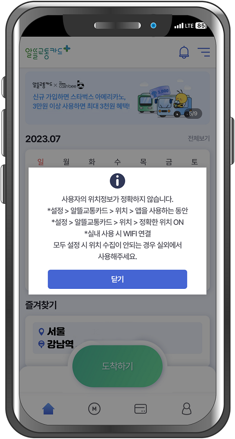 알뜰교통카드가 아니면 앱을 사용할 수 없습니다.