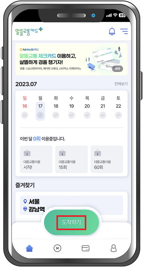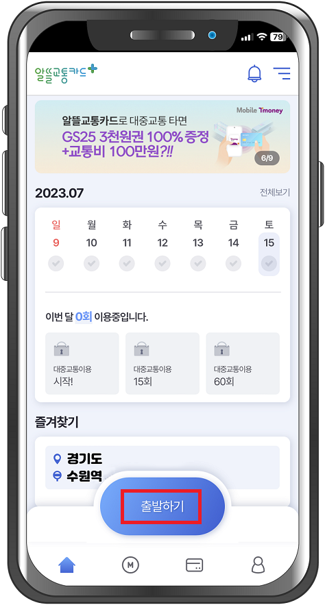 도착지에서 알뜰교통카드 앱을 실행합니다.