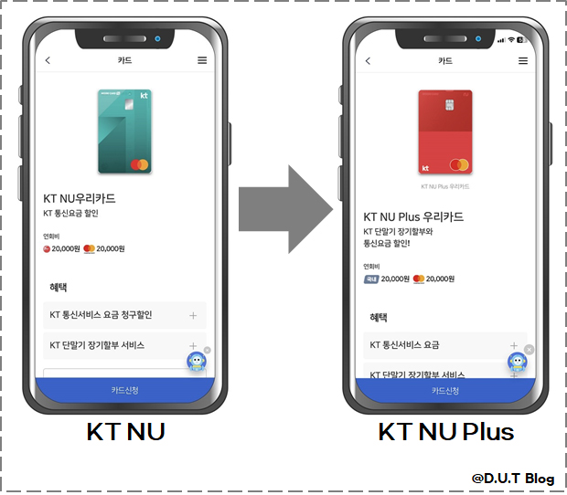 저만의 생각이지만, 우리카드 입장에서 손해가 발생(?)해서 기존의 KT NU 우리카드를 단종하고 신규로 KT NU Plus 우리카드를 출시했다고 보입니다.