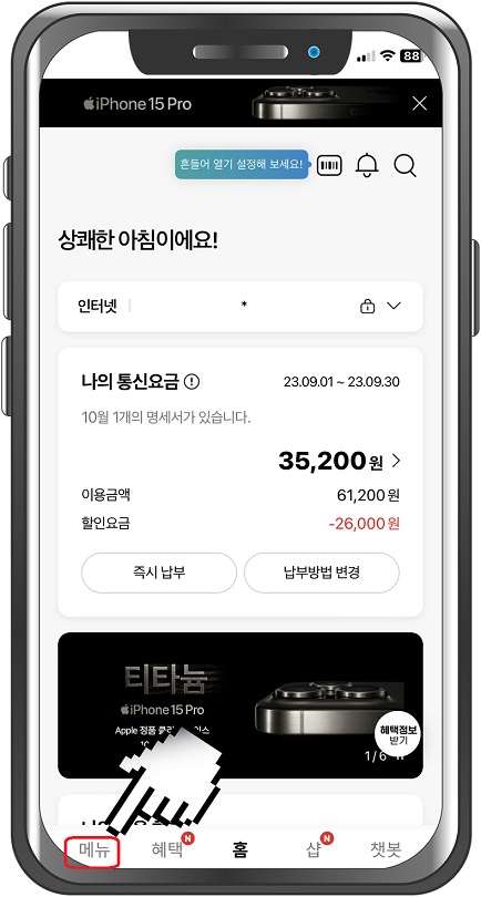 아래 방법은 앱으로 KT 통신요금 자동 납부를 신청하는 방법입니다.
