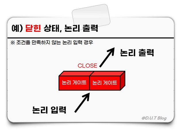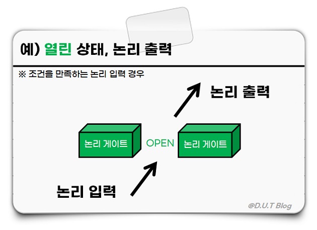 조건을 만족하면 논리 게이트가 열린(Open) 상태에서 논리 입력을 받아 논리를 출력합니다.