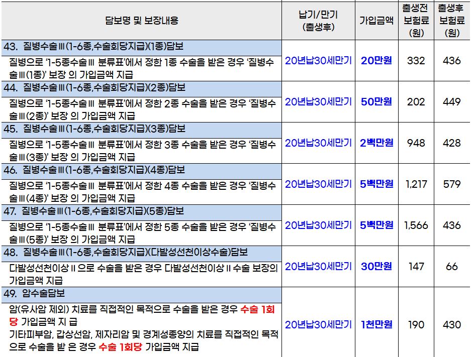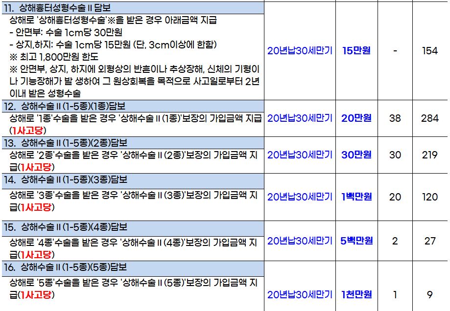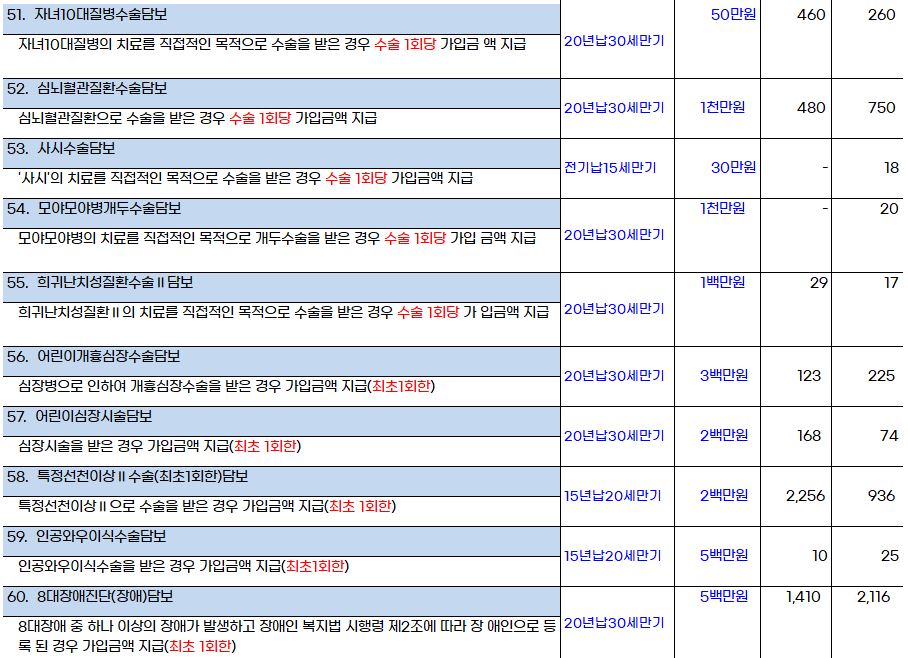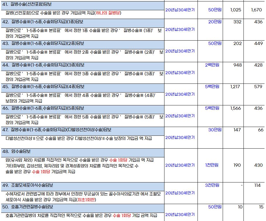호흡기관련질병수술담보와 사시수술담보를 제외한 이유는 보험비는 정말 얼마 안 되지만, 보장받기가 힘들다는 내용을 보고 제외한 걸로 기억합니다.