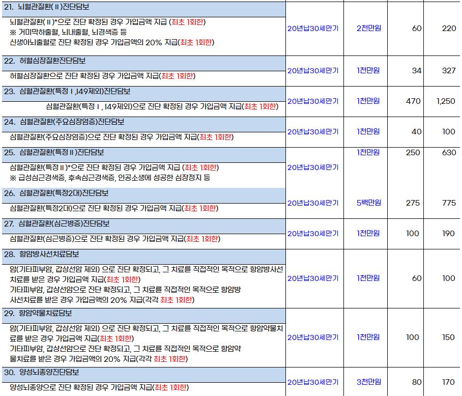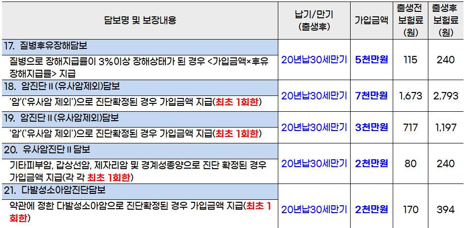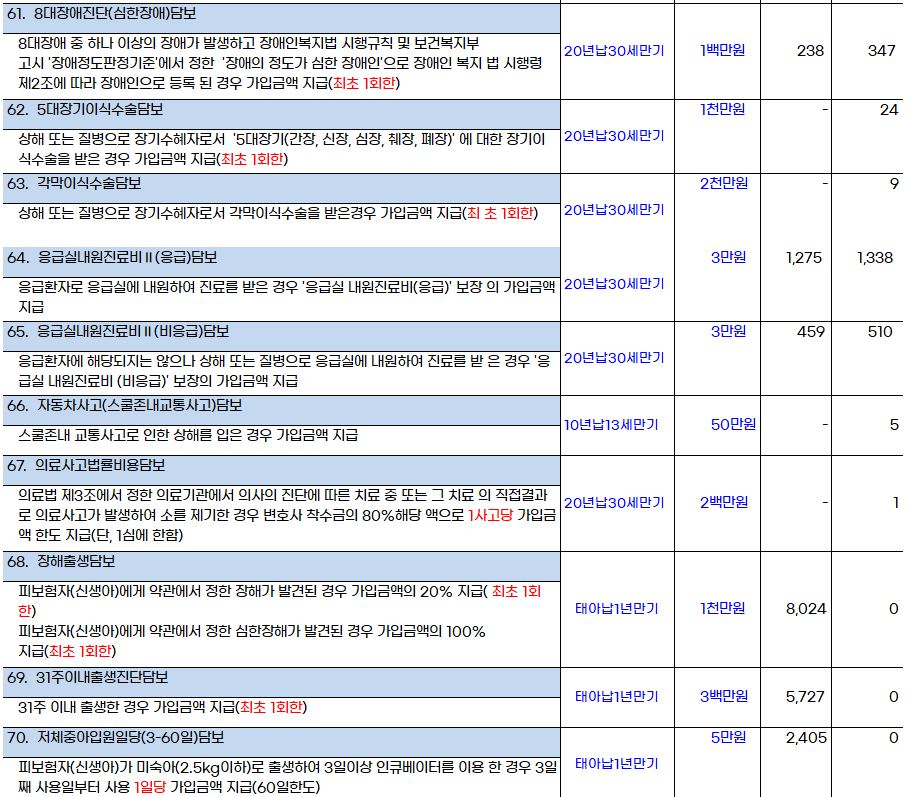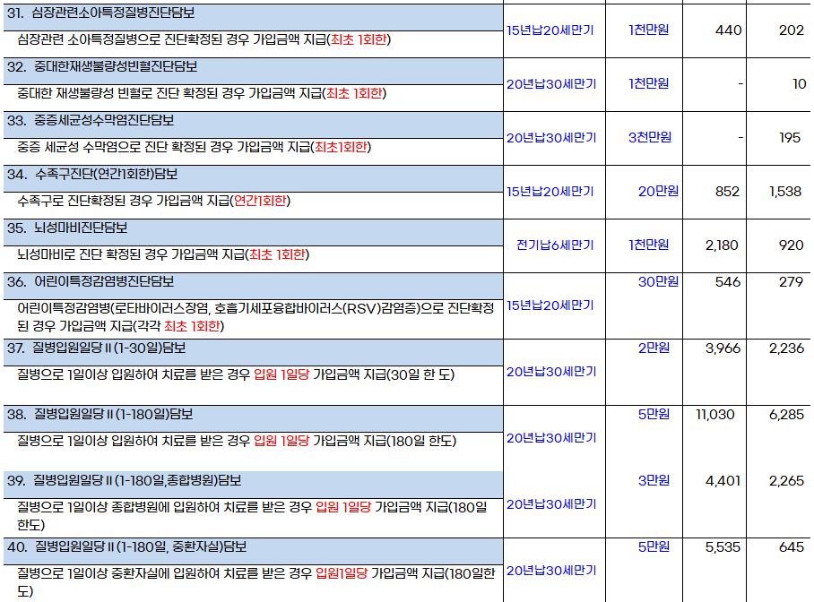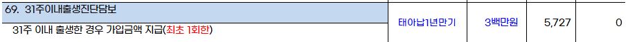 31주이내출생진단담보도 출생 통계적으로 아주 확률이 낮기 때문에 제외했습니다.