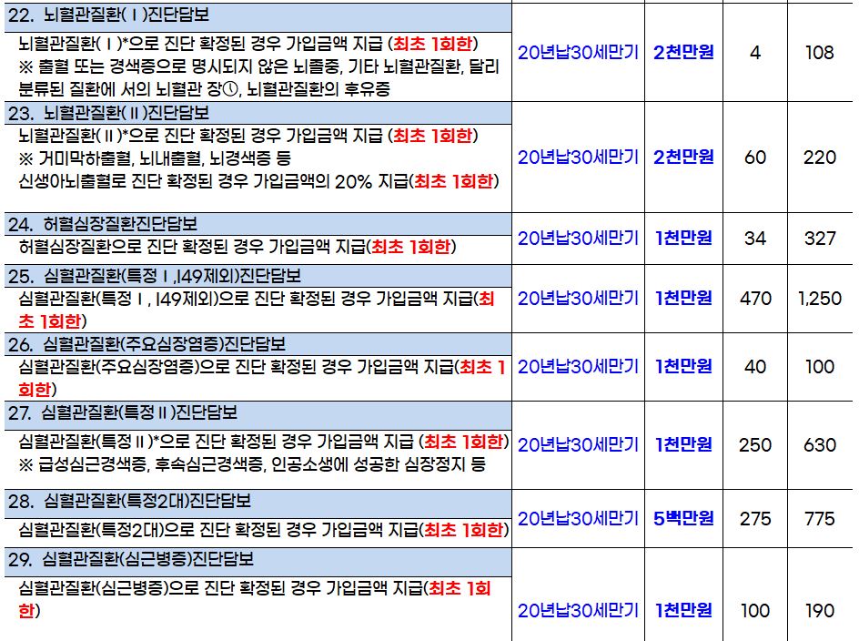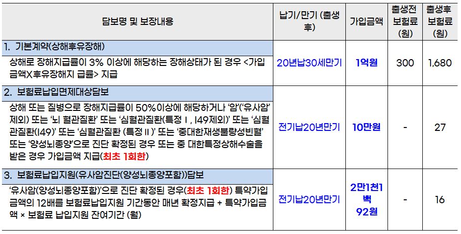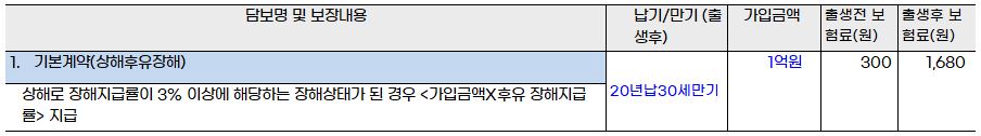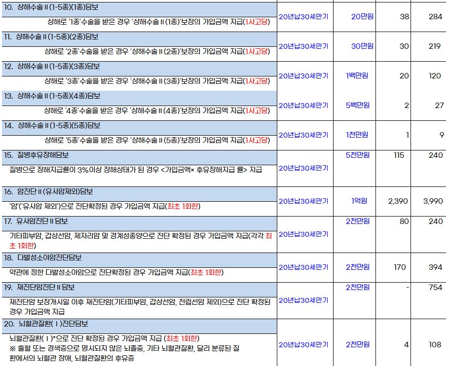 그리고 다시 일부 내용을 수정해서 최종 위험보장 및 보험금 지급내용을 구성했습니다.