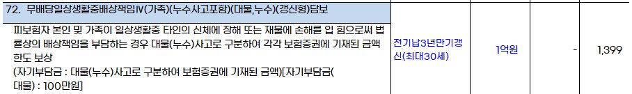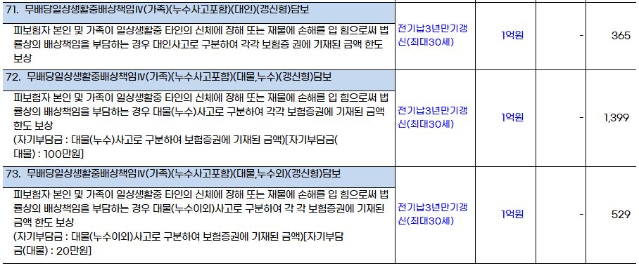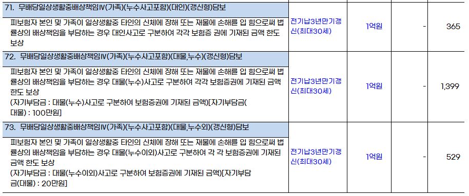 71. 무배당일상생활중배상책임Ⅳ(가족)(누수사고포함)(대인)(갱신형)담보