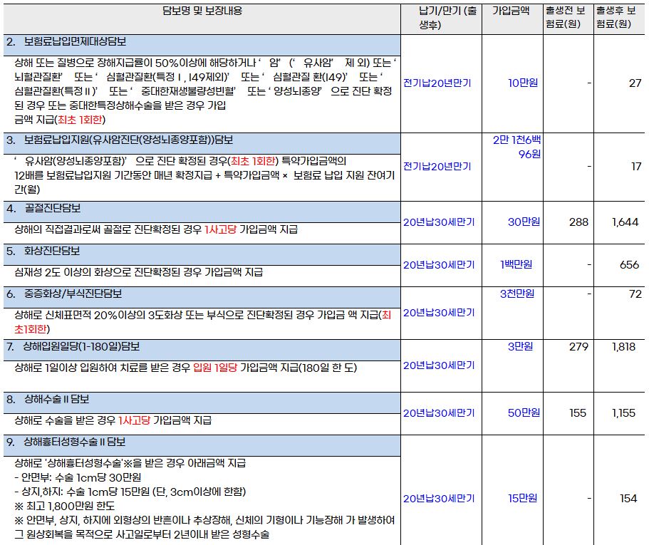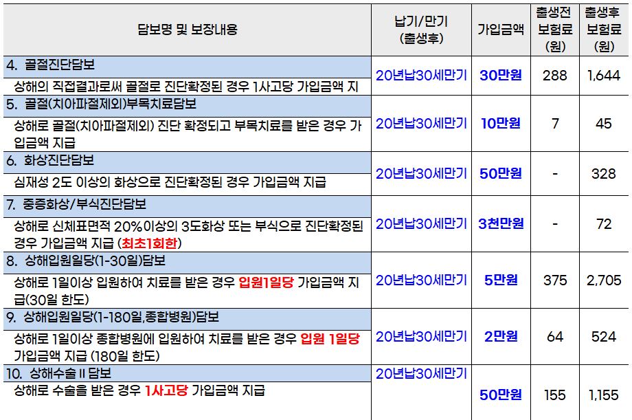- 굿앤굿종합보험 20년납 30세만기 출생전 54,800원 / 출생후 35,470원