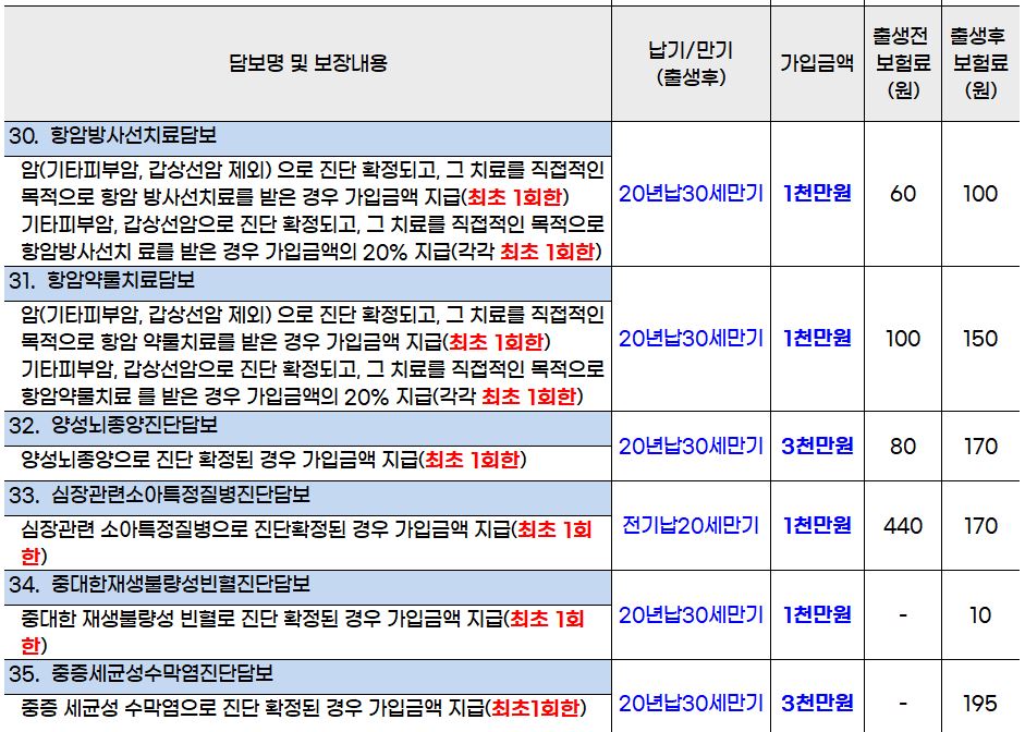 공통적으로 출생 후 보험료를 약 35,000원 전후로 많이들 추천하시더라고요.