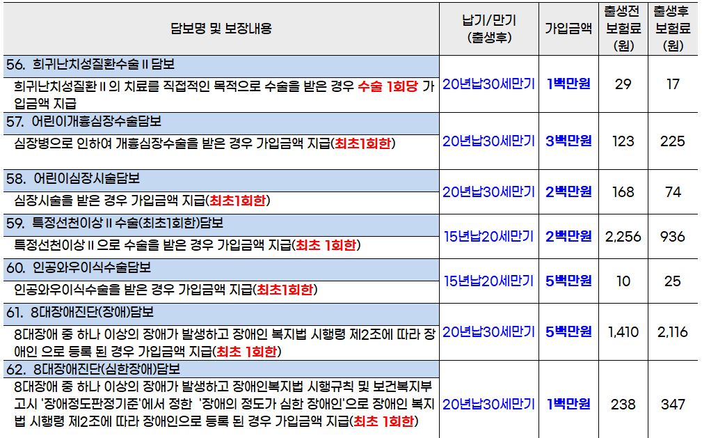 - 굿앤굿종합보험 20년납 30세만기 출생전 56,860 / 출생후 44,690