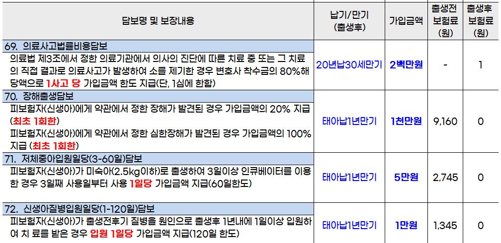 - 현대해상 실손의료비 출생전 14,210 / 출생후 21,560