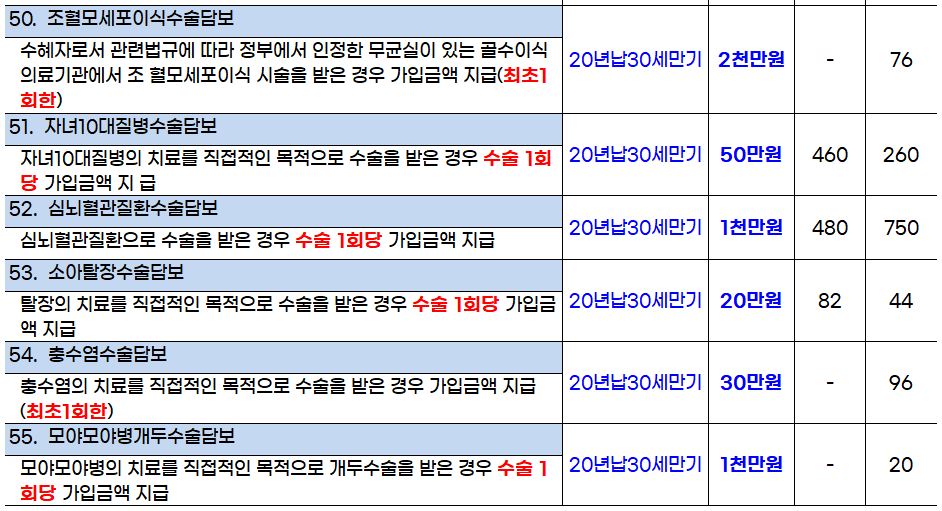 - 충수염수술담보