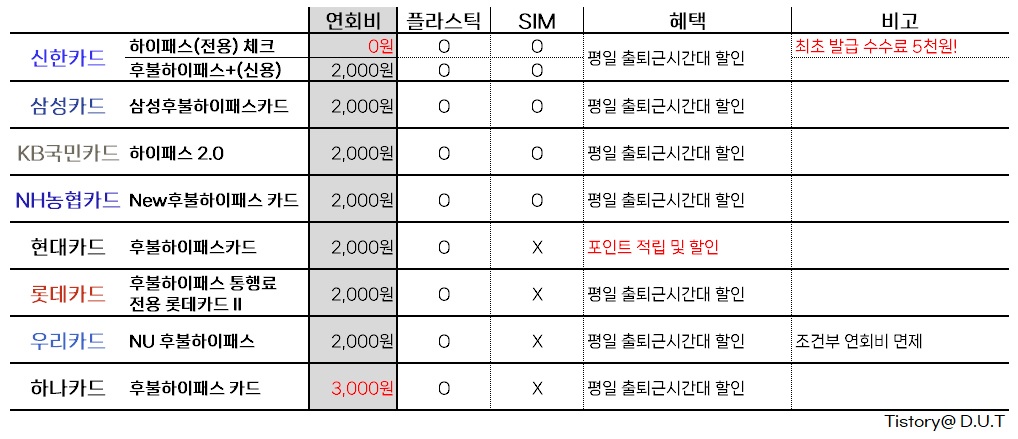 이번 포스팅은 하이패스 카드 혜택 비교! 입니다.