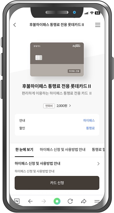 6. 롯데카드 - 후불하이패스 통행료 전용 롯데카드Ⅱ