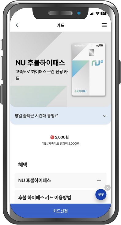 저는 우리카드 NU 후불하이패스를 발급받으려고 생각하고 있습니다.