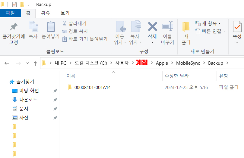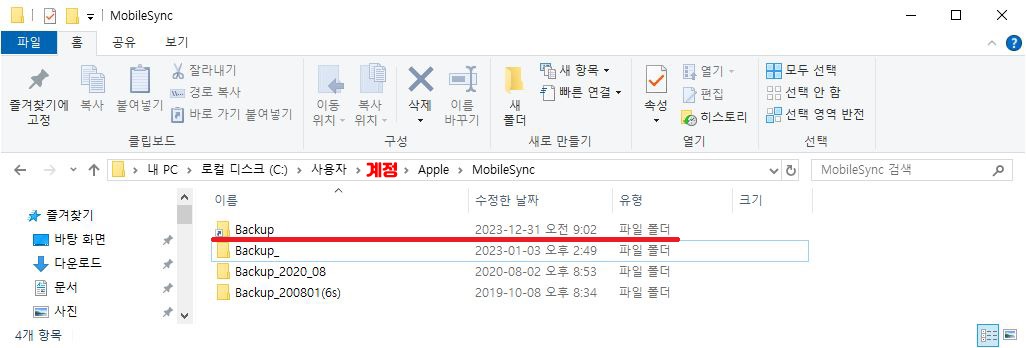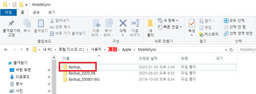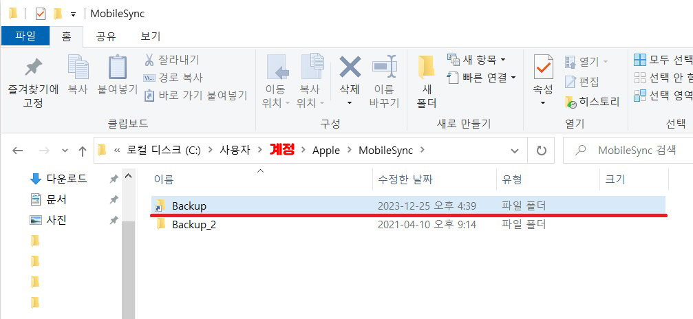로컬 디스크(C:) > 사용자 > 계정 > Apple > MobileSync