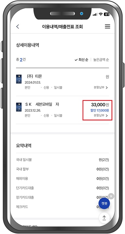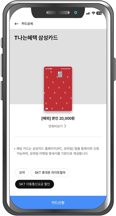 즉, SKT 휴대폰 단말기 할부와 이동통신요금 할인을 제공하는 신용카드입니다.