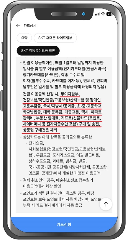 실적제외 항목인 줄 모르고 결제하면 나중에... 모두 아시죠?