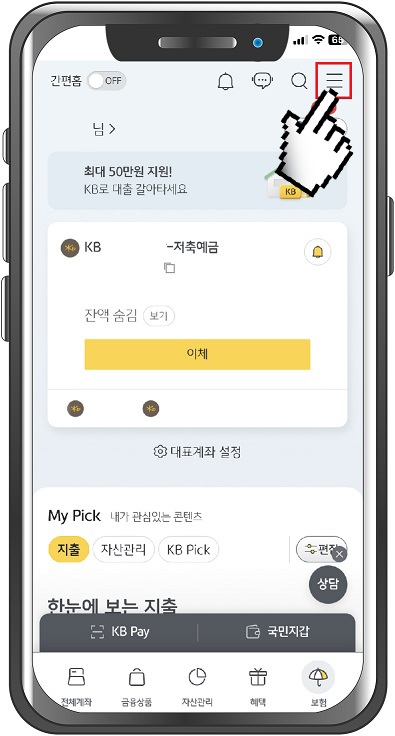 KB국민은행 앱인 KB스타뱅킹으로 접속합니다.