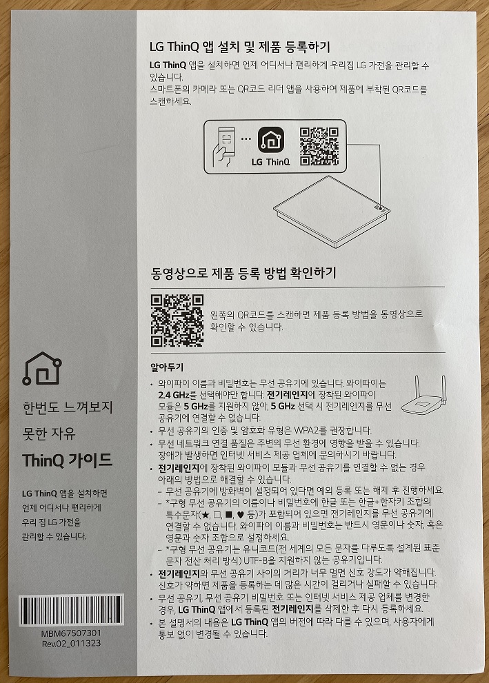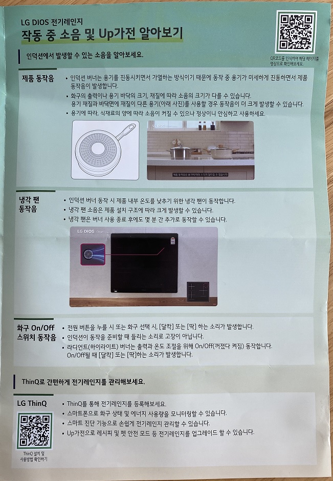 ThinQ 앱으로 설치하여 인덕션을 제어할 수 있는지는 나중에 해봐야겠네요!