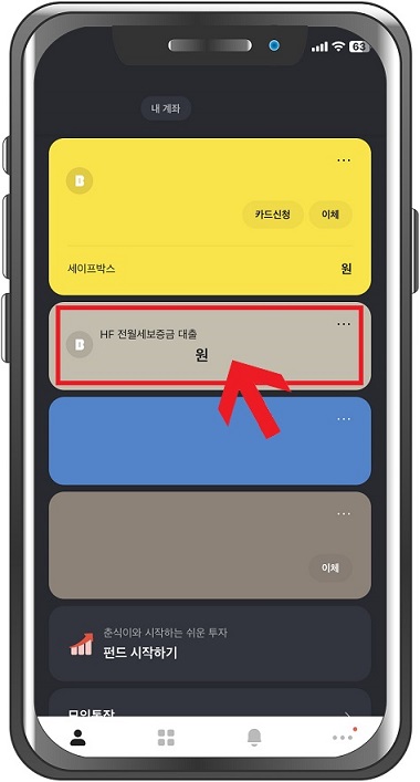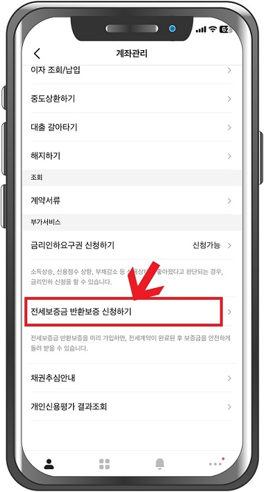 터치로 아래를 내려보시면 전세보증보험 신청 메뉴가 있습니다.