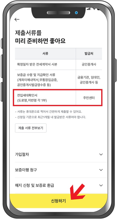 서류를 준비하고 전세보증보험 모바일 가입을 진행했습니다.