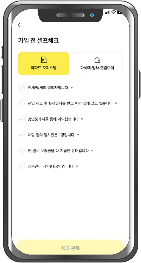 전세보증보험 모바일 가입 신청을 완료했습니다.