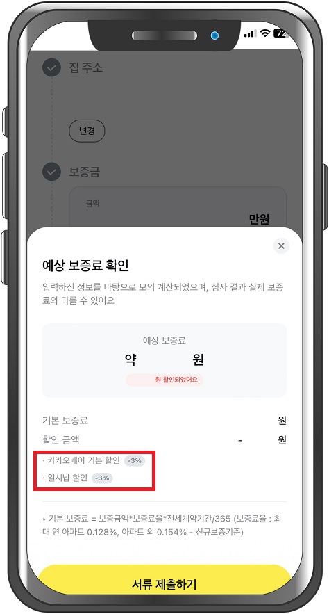 모든 항목을 입력하면 예상 보증료를 확인할 수 있습니다.