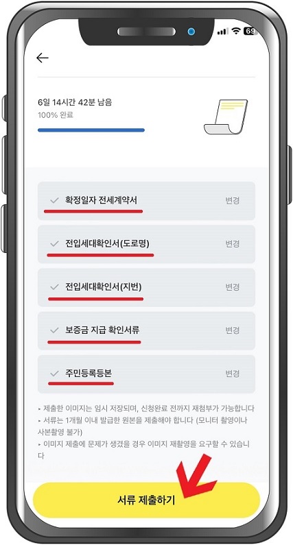 확인하고 서류 제출하기를 터치합니다.