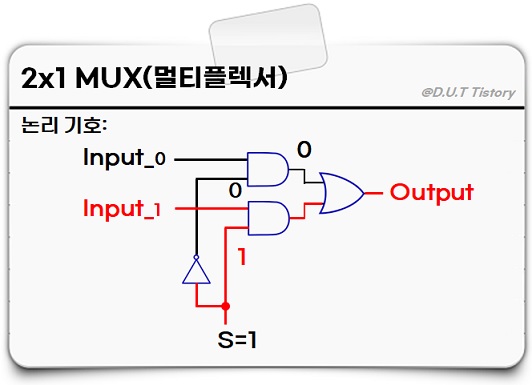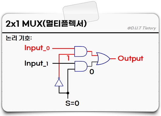 선택선 S=0을 선택하면 Input_1과 연결된 AND 게이트는 Input_1에 입력과 상관없이 항상 0을 출력합니다.