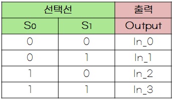 진리표를 보시면 선택선에 따라 출력에 In_0, In_1, In_2, In_3을 출력할지 선택할 수 있습니다.