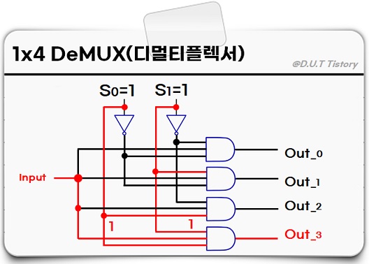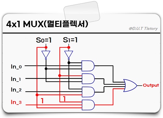 나머지 동작 원리도 동일하므로, 마지막으로 선택선 S0=1, S1=1 경우를 알아보겠습니다.