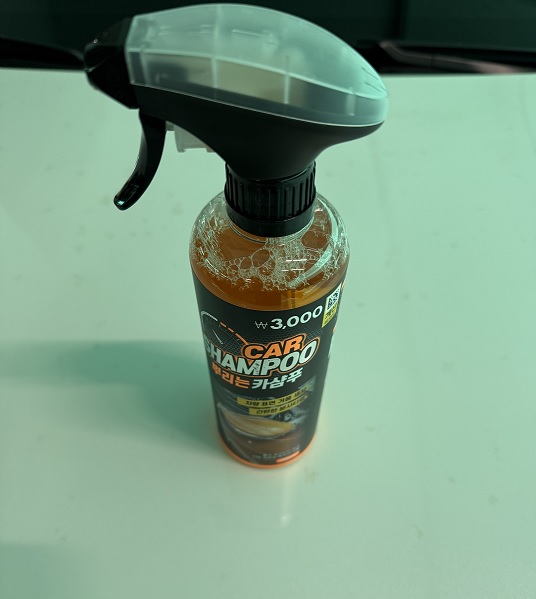 보닛에 다이소에서 구매한 뿌리는 카샴푸를 뿌렸습니다.